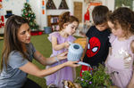 Rich conversations happen naturally throughout our day. Children learn to express their ideas, ask thoughtful questions, retell experiences, follow multi-step instructions, and engage in back-and-forth dialogue. Whether they're negotiating roles in dramatic play, explaining their block construction, or listening to stories, language development is woven into every interaction.